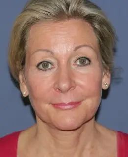 Auch nach 6 Jahren, mit nun 64 Jahren, sieht die Patientin jünger aus, als sie ist, ihr Gesichtsausdruck ist frisch, die Wangen straff und das Doppelkinn nicht zu sehen.